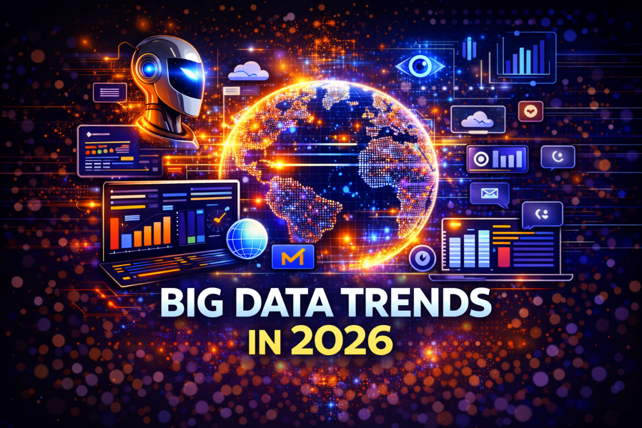 Discover key Big Data trends in 2026 including AI-powered analytics, real-time streaming, cloud BI, data mesh architecture, and security innovations.